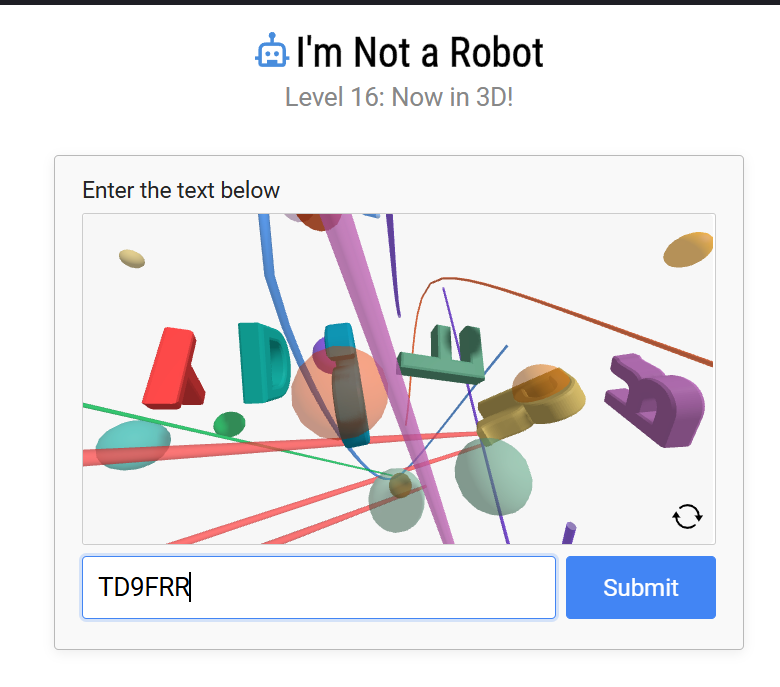 How to Solve 'I'm Not a Robot' Level 16 3D Text Recognition Challenge
